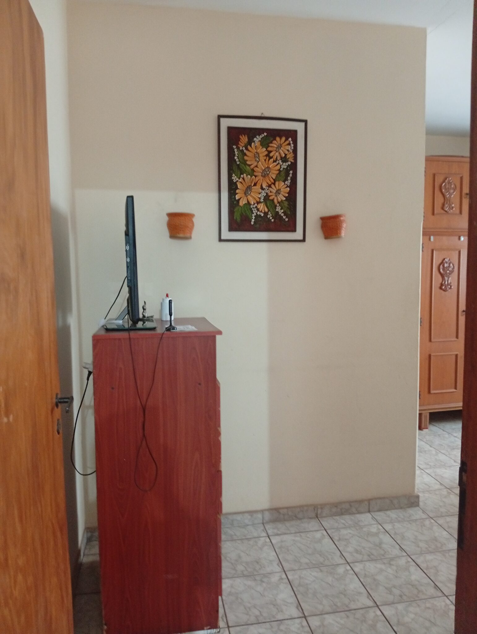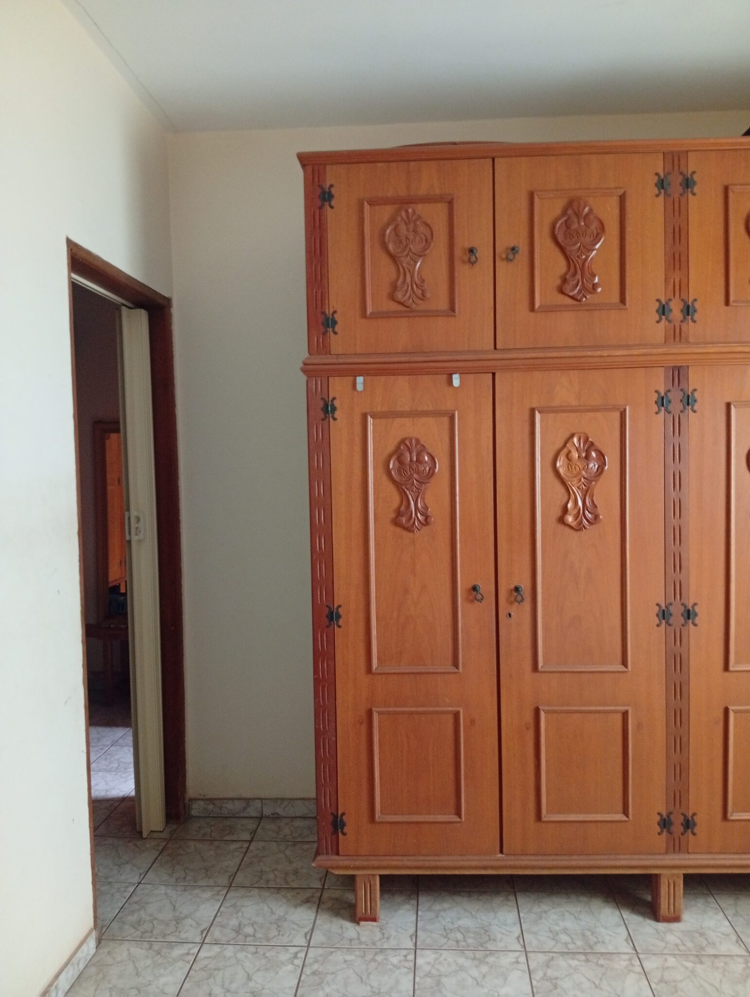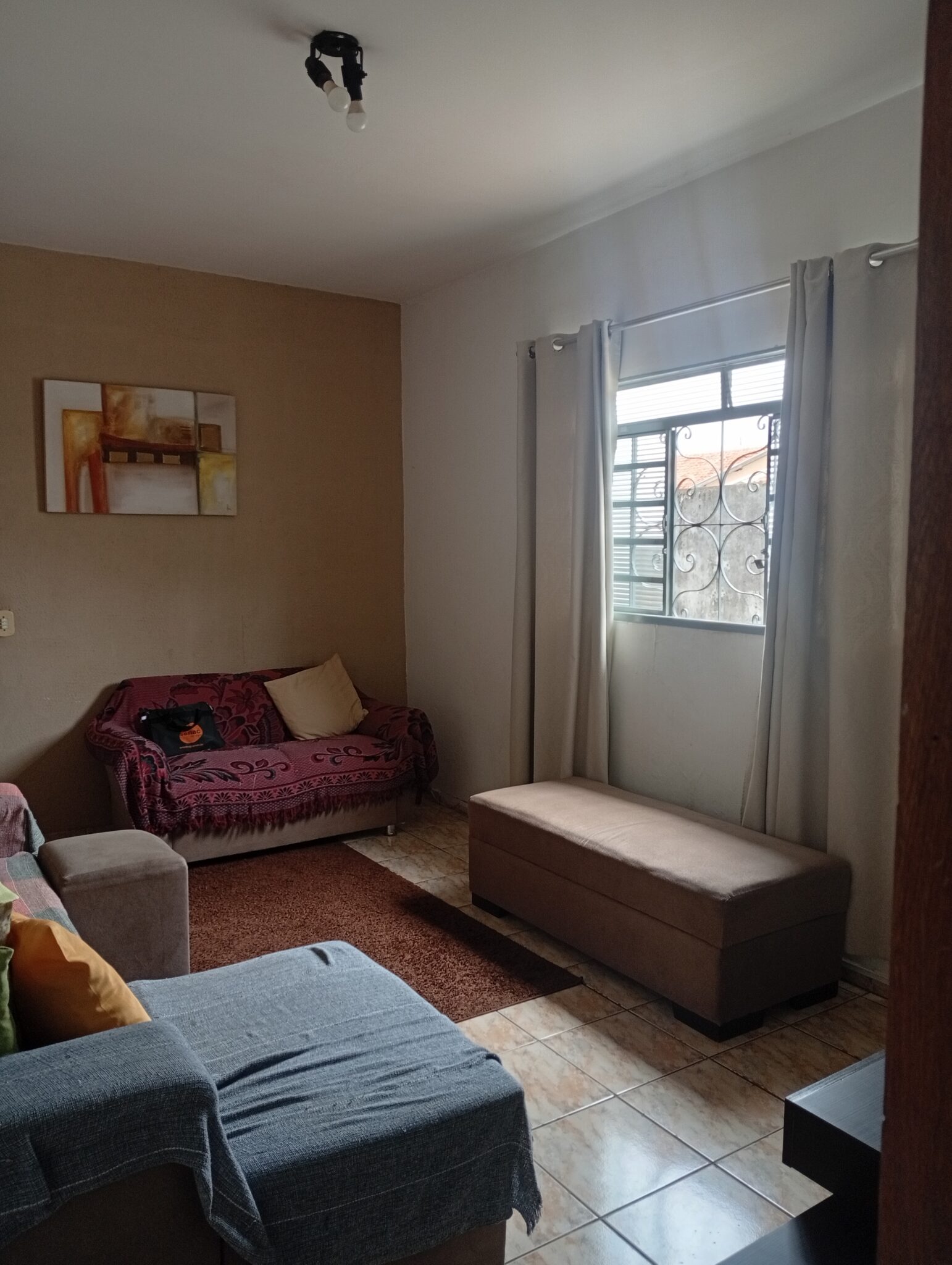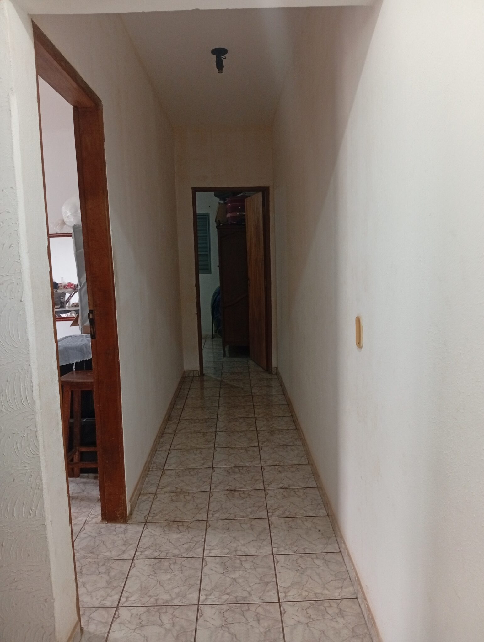 01 Garagem para 02 carros, 02 salas conjugadas, 03 quartos sendo 01 deles suíte, 01 banheiro social externo, 01 copa, 01 cozinha, 01 varanda, 01 despensa, 01 área de serviço, 01 banheiro social externo.