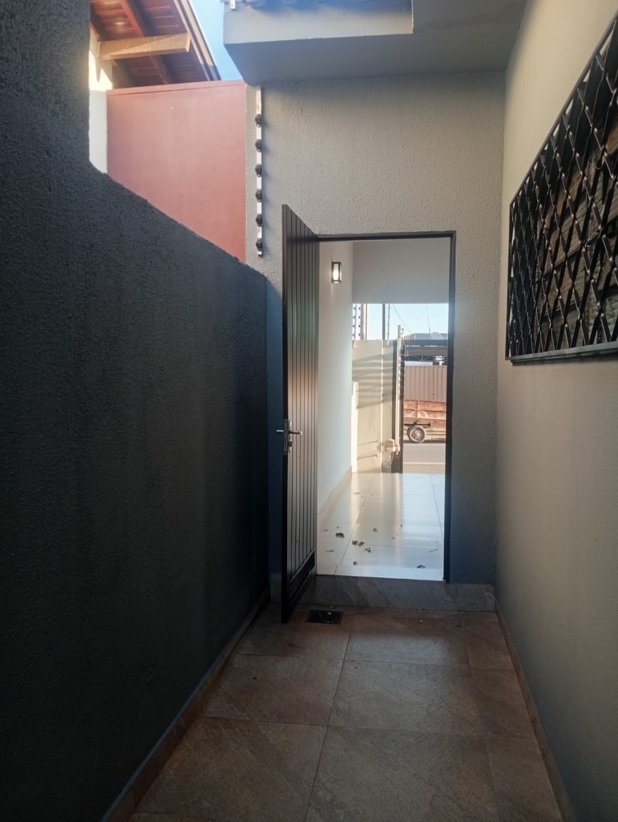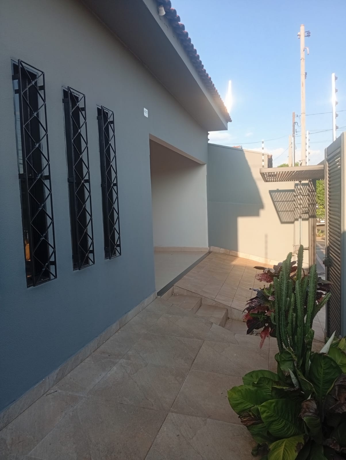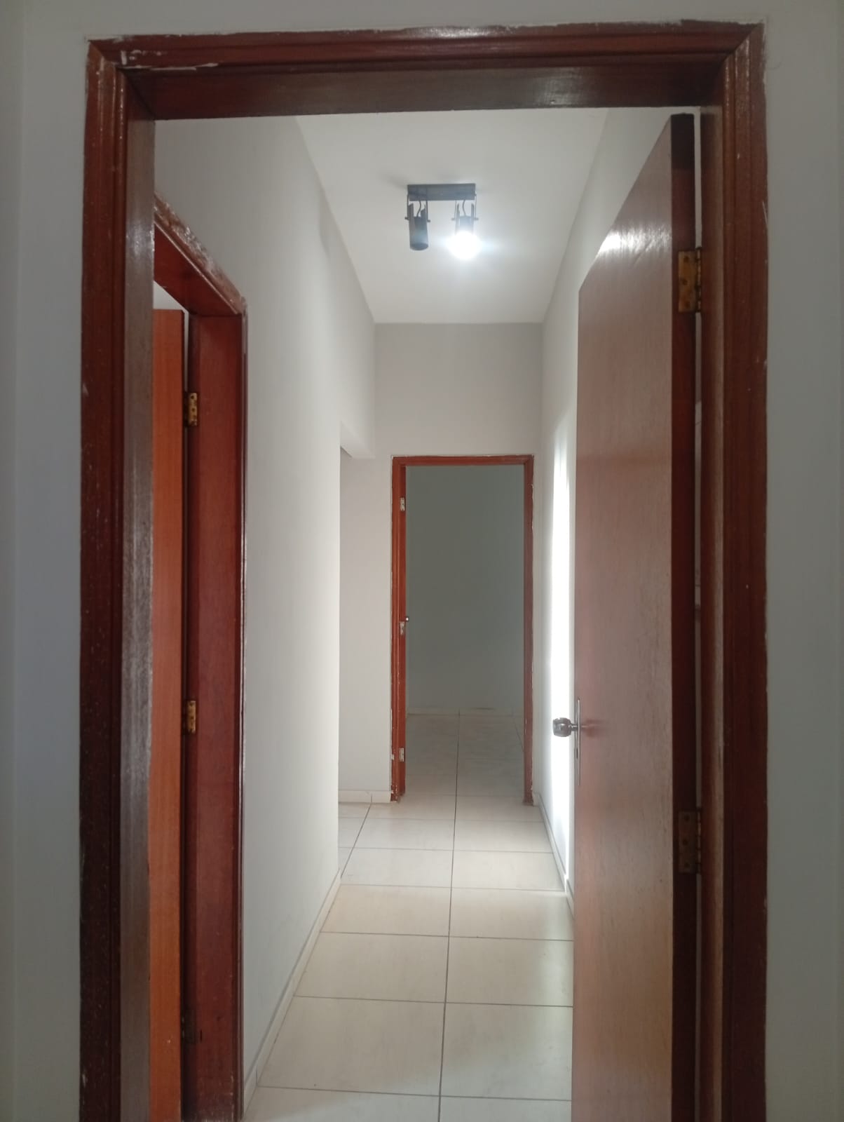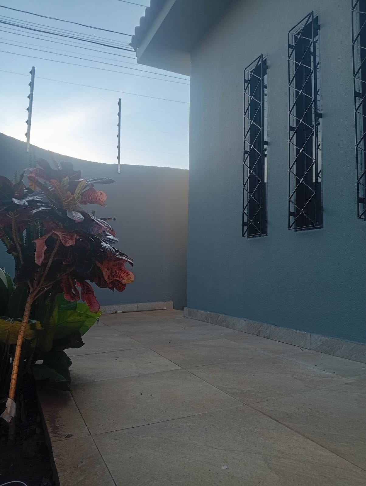 Garagem para 02 carros na frente, garagem para 01 carro no fundo, 01 sala, corredores interno, 01 banheiro social, 03 quartos sendo 01 suíte, 01 copa, 01 cozinha, corredores externos, quintal, 01 área de serviço.