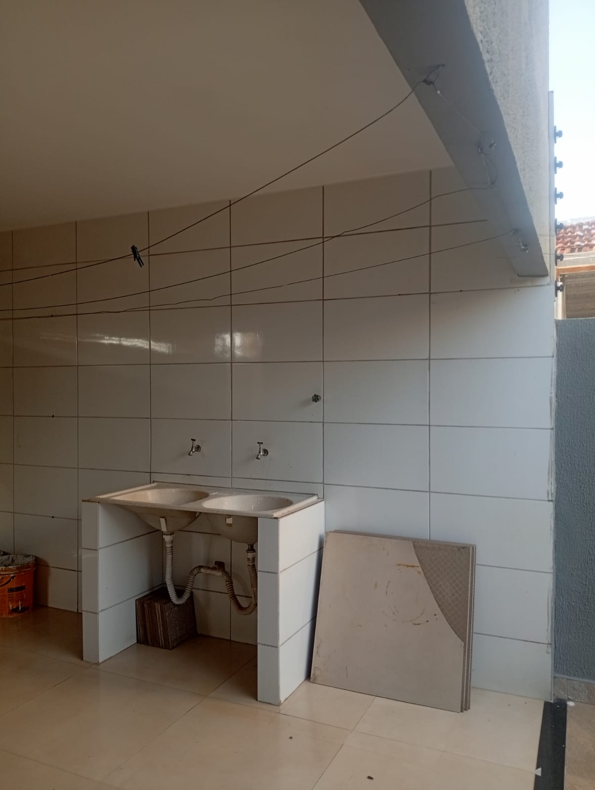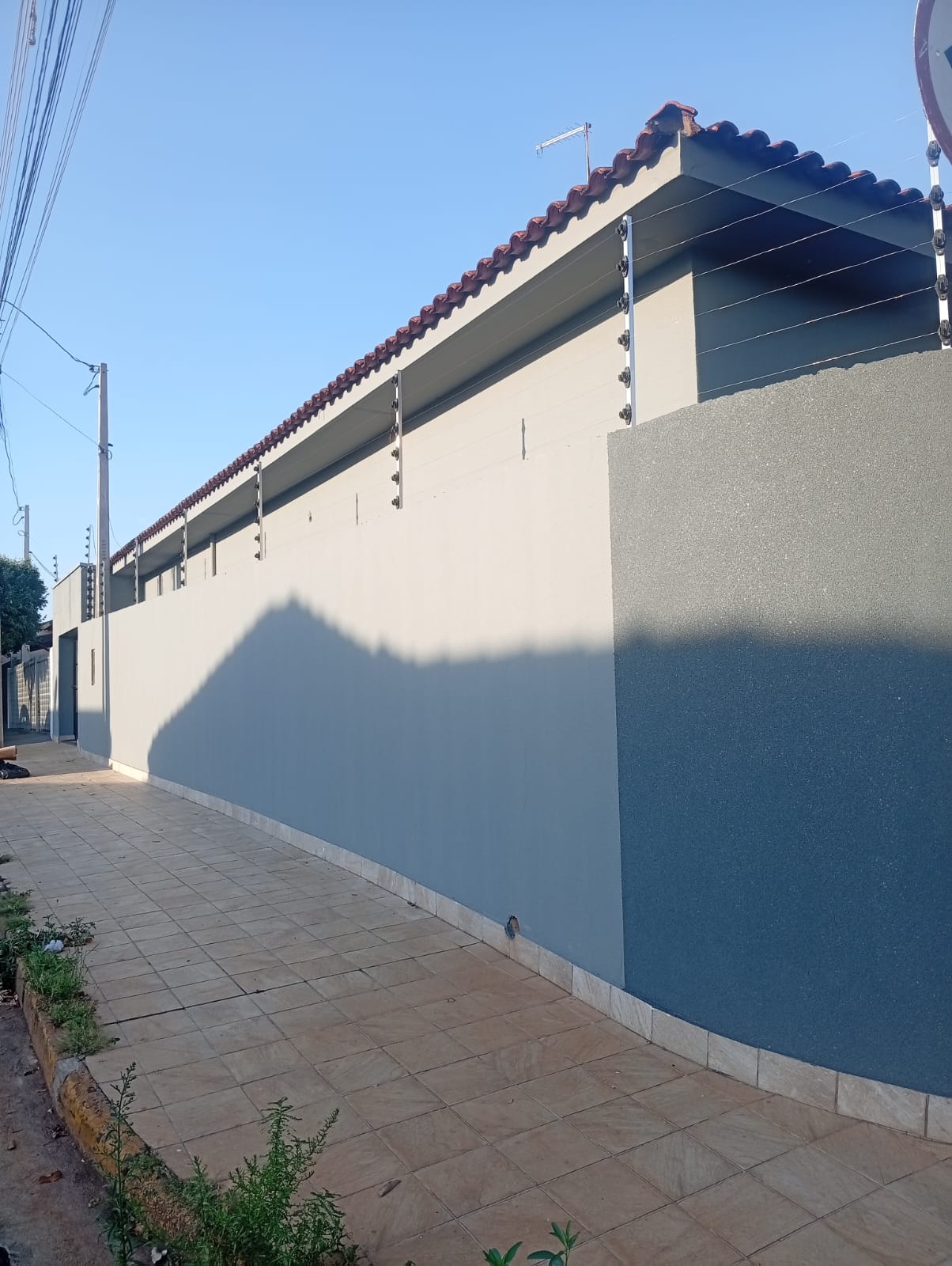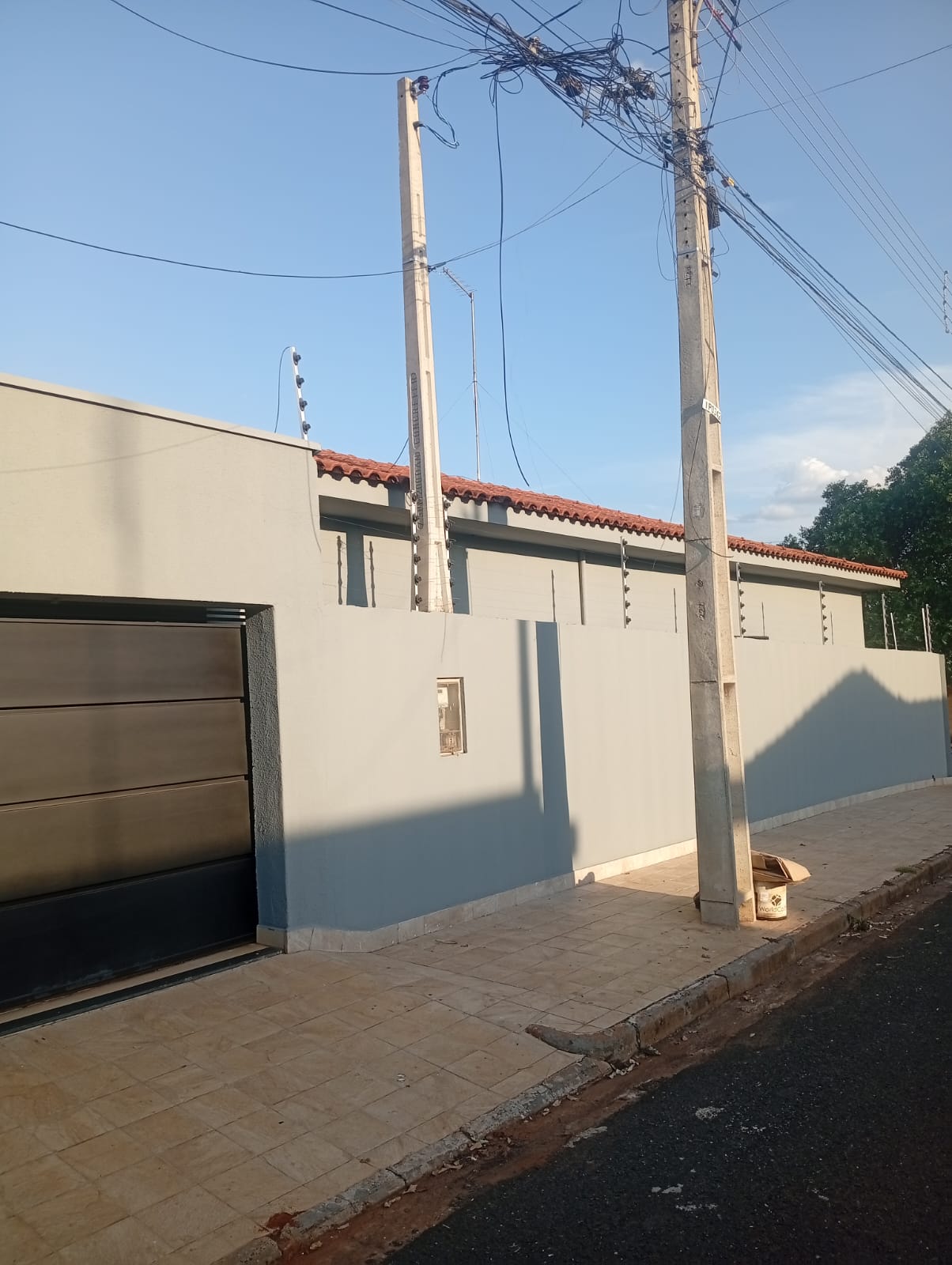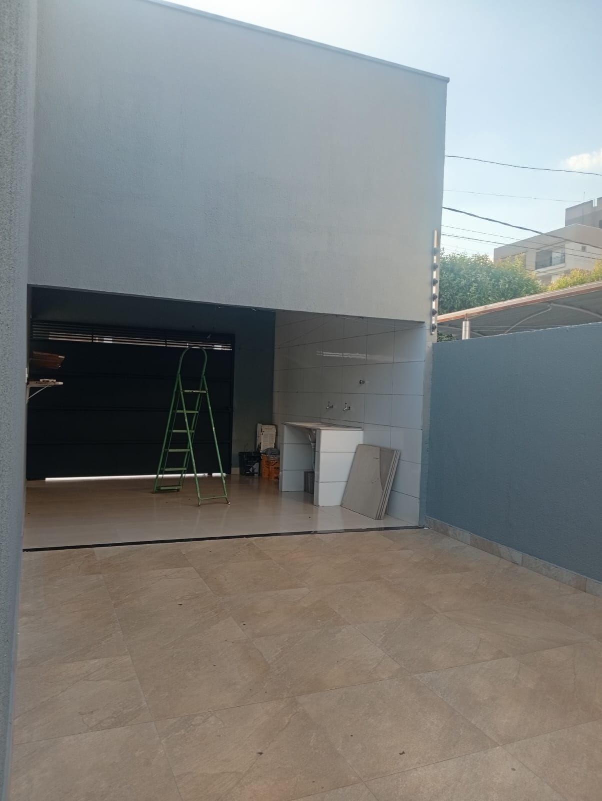 Garagem para 02 carros na frente, garagem para 01 carro no fundo, 01 sala, corredores interno, 01 banheiro social, 03 quartos sendo 01 suíte, 01 copa, 01 cozinha, corredores externos, quintal, 01 área de serviço.
