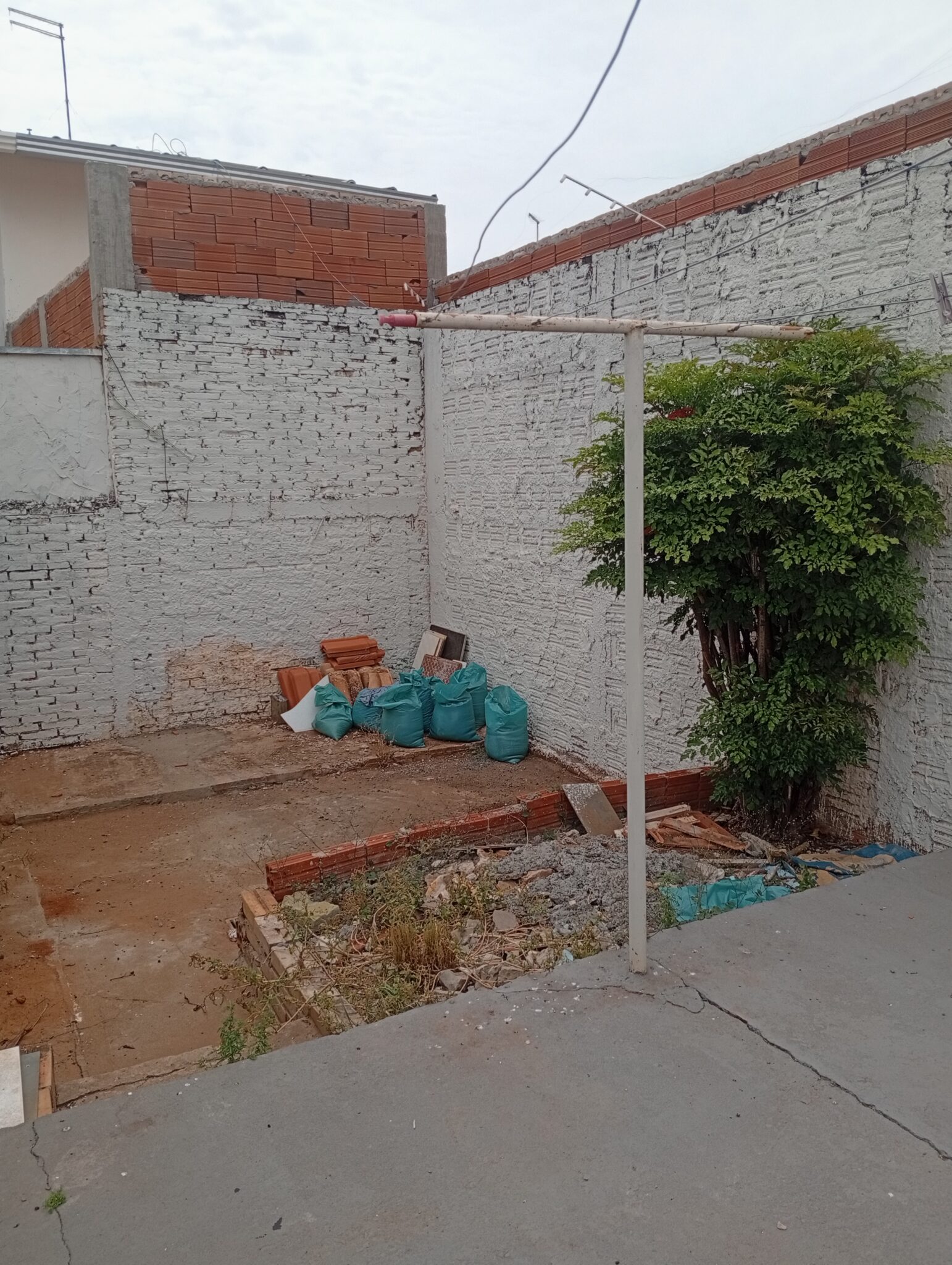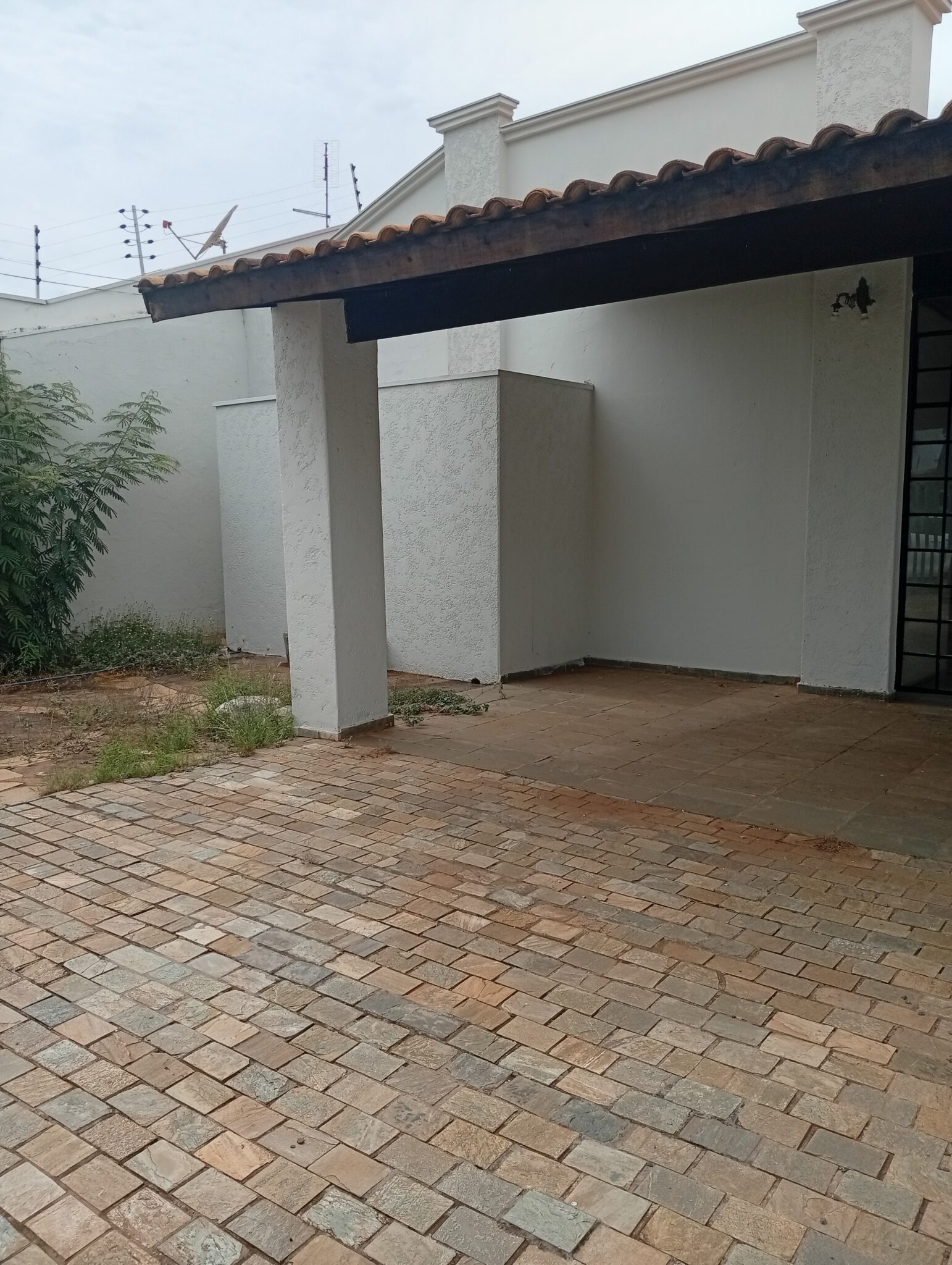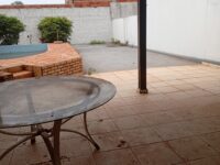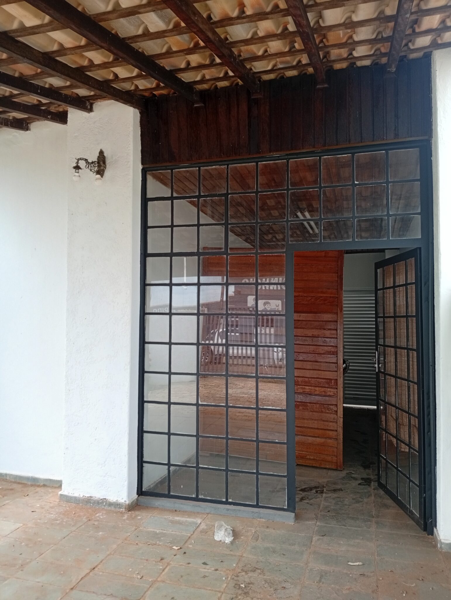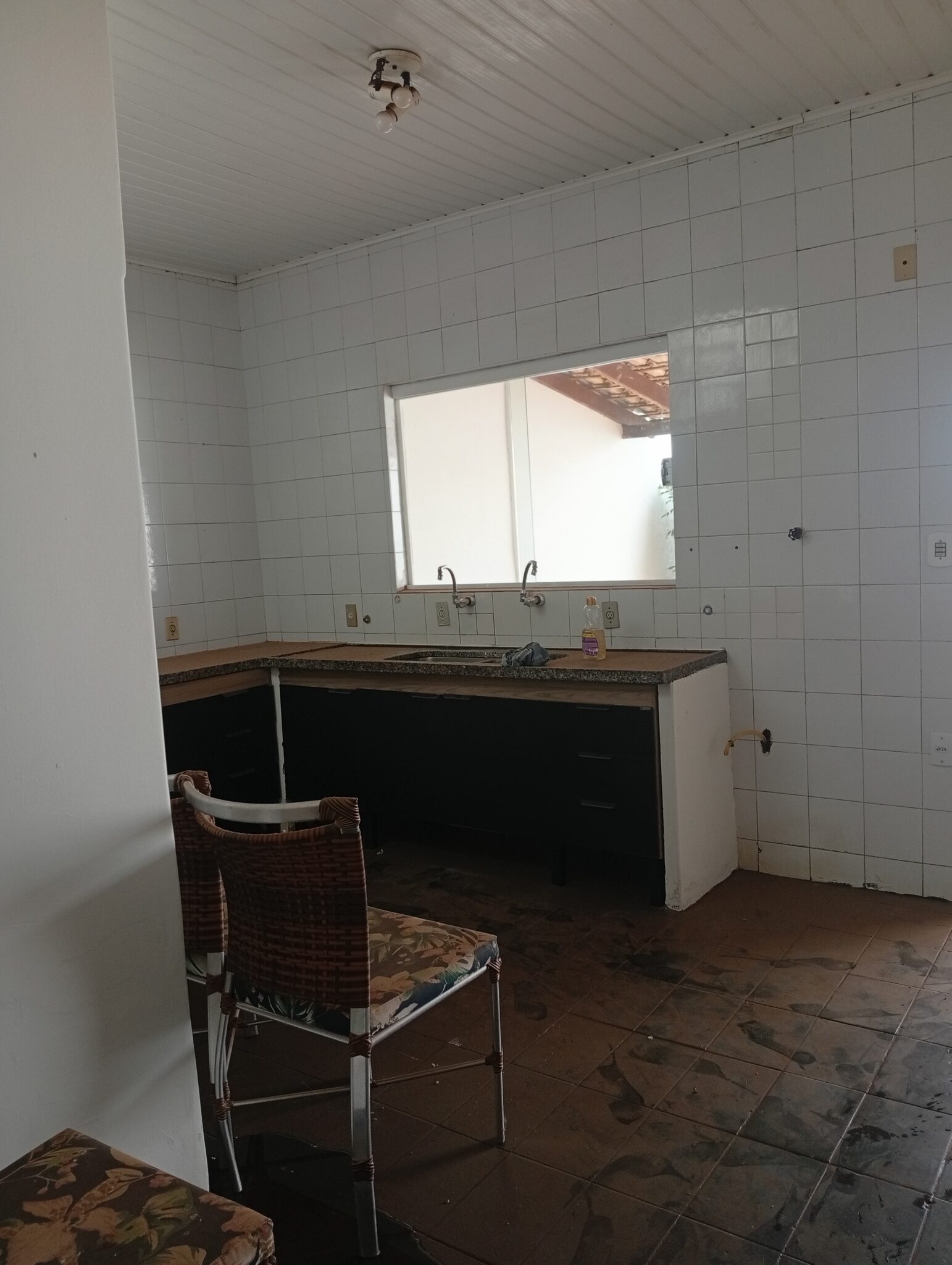 Garagem para 02 carros, 01 hall de entrada, 02 salas conjugadas, 01 banheiro social interno, 03 quartos sendo 01 deles suíte, 01 jardim de inverno, 01 cozinha, 01 dispensa, 01 área de serviço, 01 banheiro externo, 01 varanda, 01 área com uma piscina grande, 01 quintal.