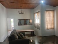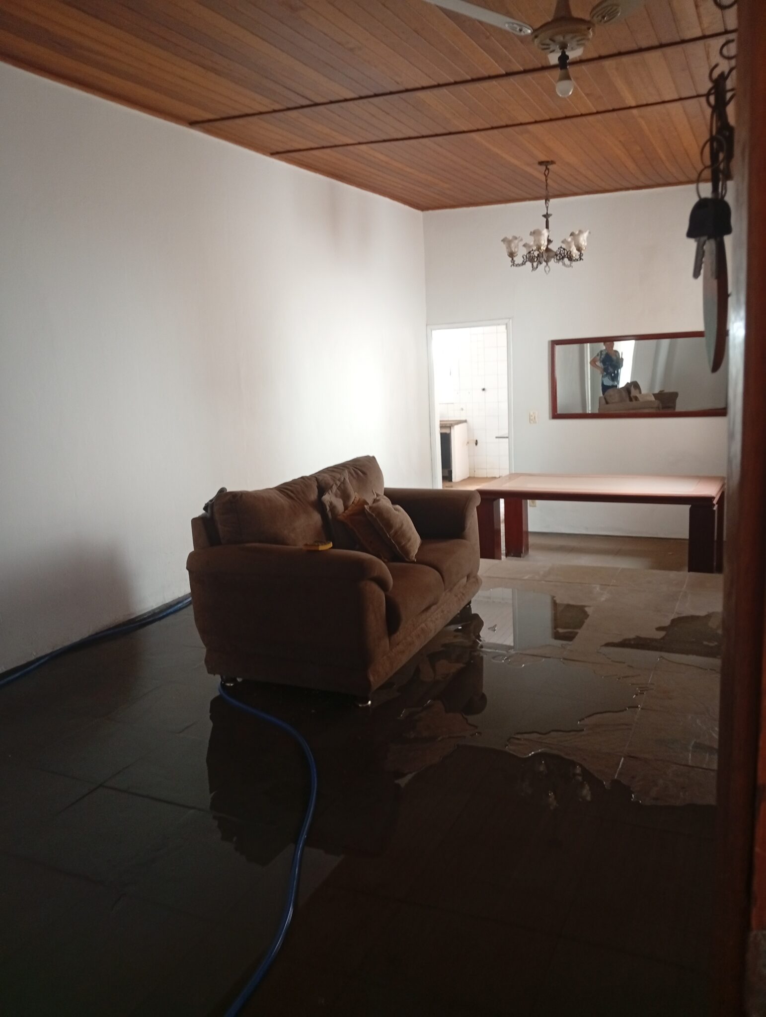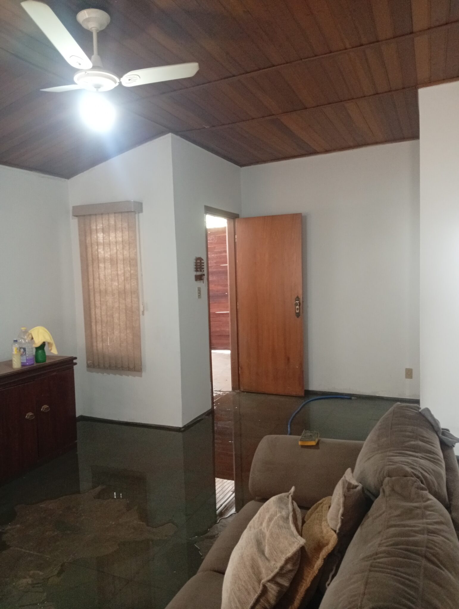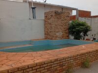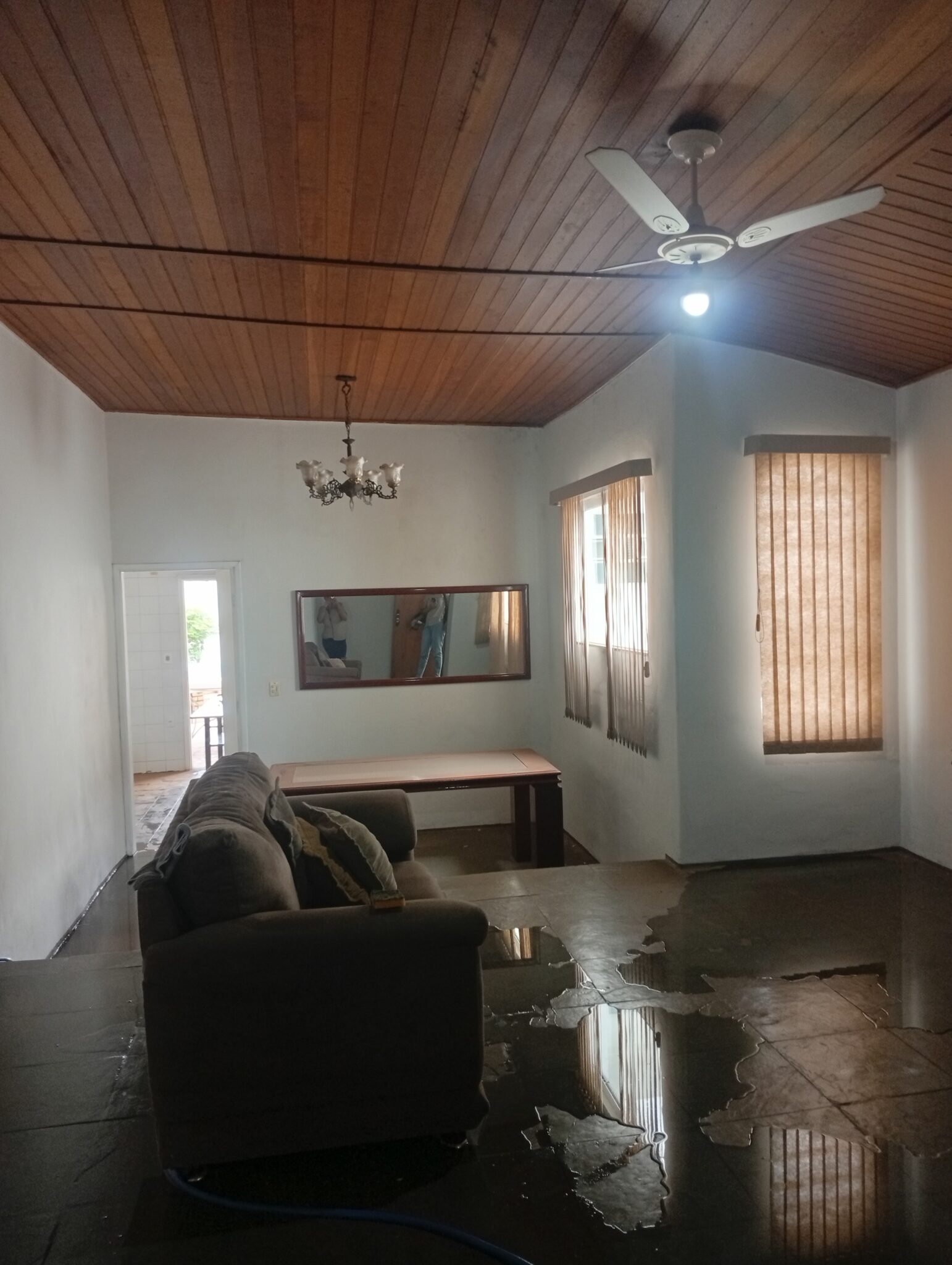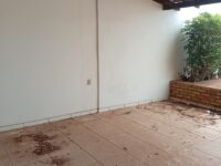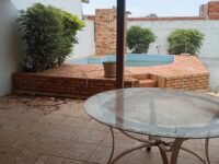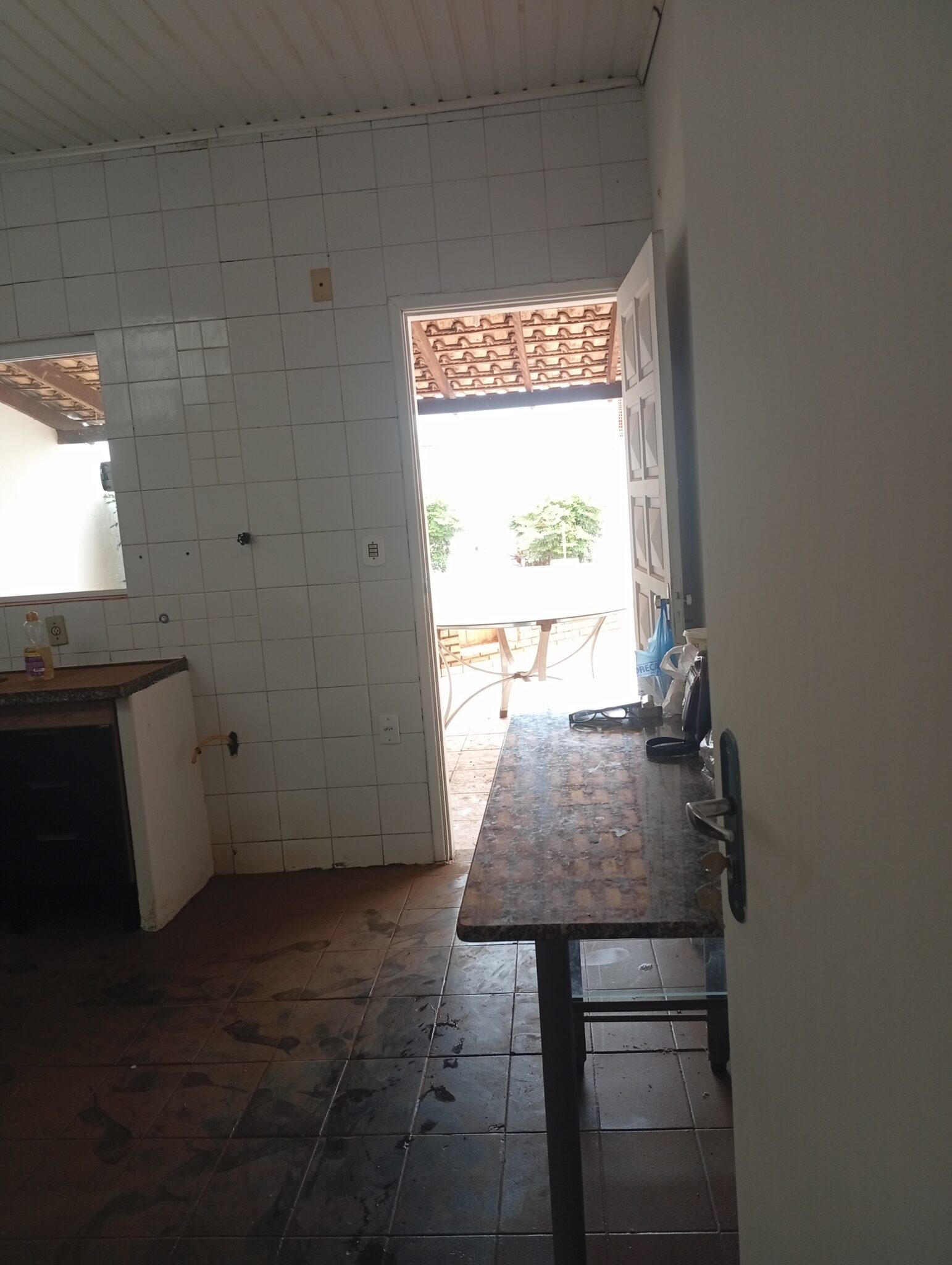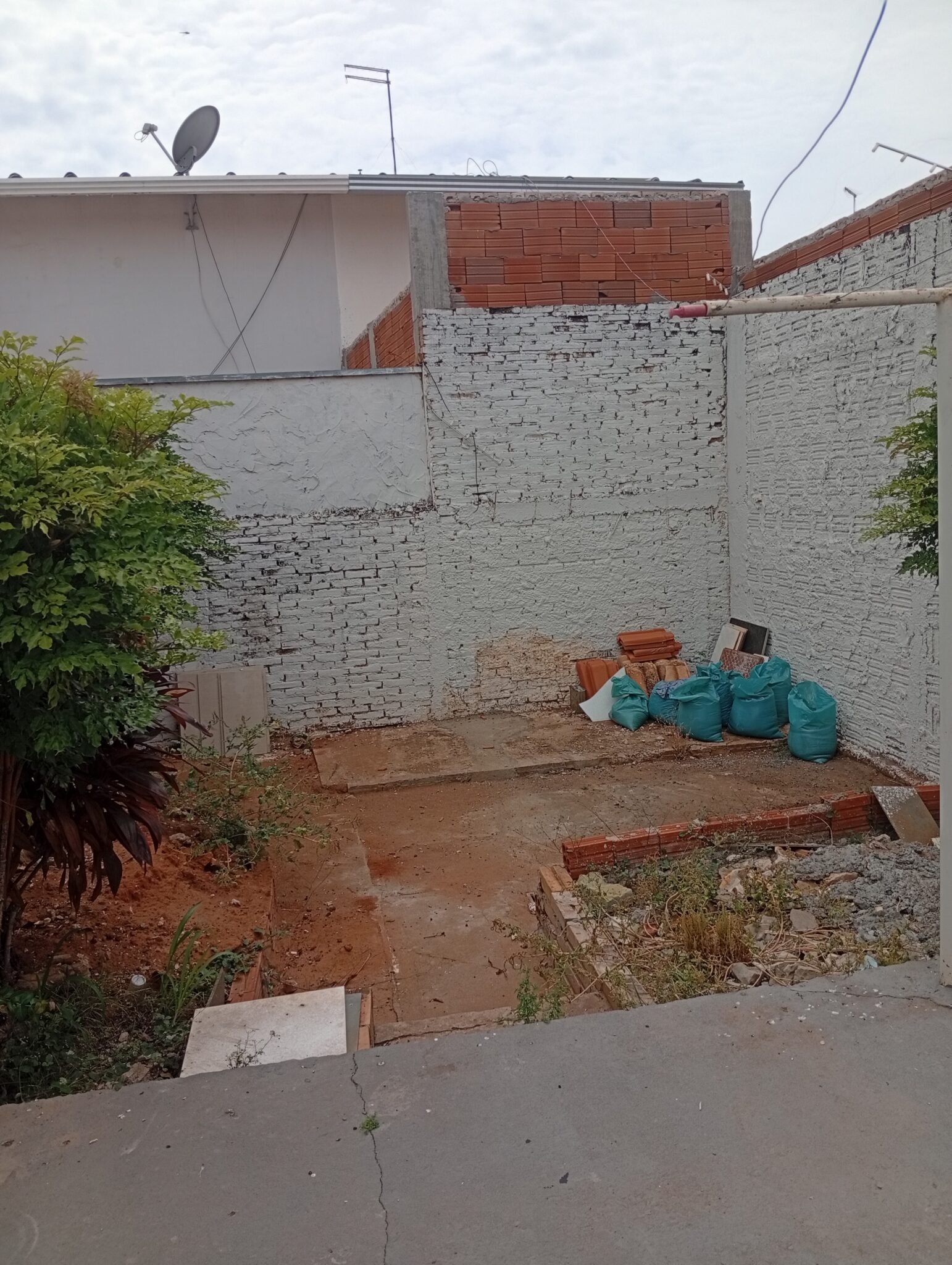Garagem para 02 carros, 01 hall de entrada, 02 salas conjugadas, 01 banheiro social interno, 03 quartos sendo 01 deles suíte, 01 jardim de inverno, 01 cozinha, 01 dispensa, 01 área de serviço, 01 banheiro externo, 01 varanda, 01 área com uma piscina grande, 01 quintal.