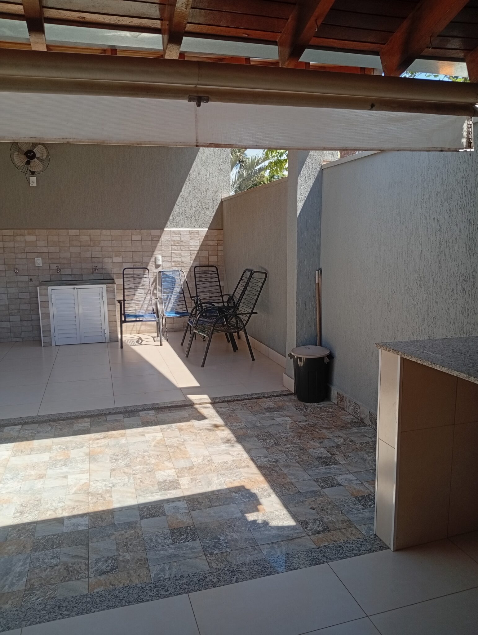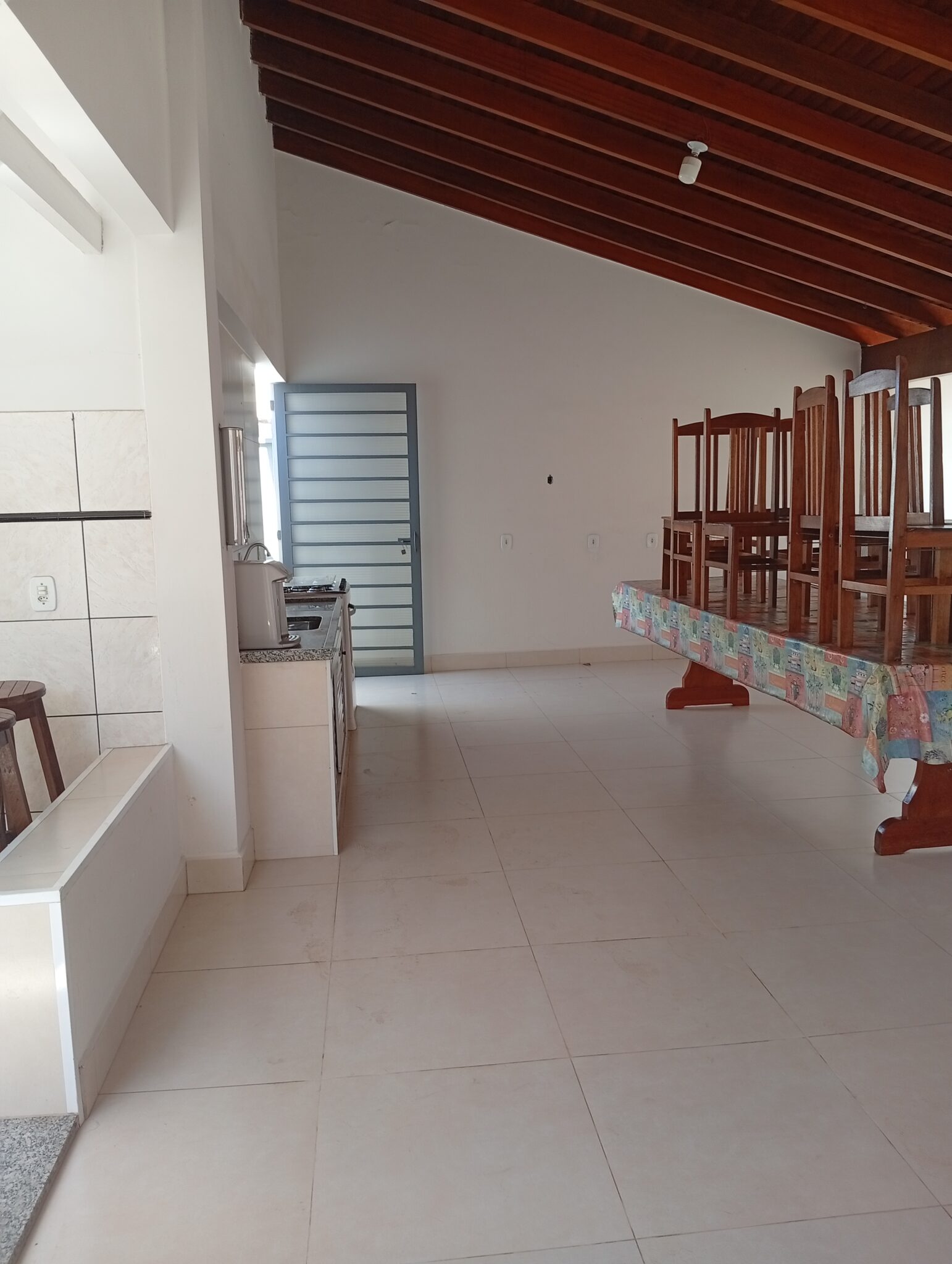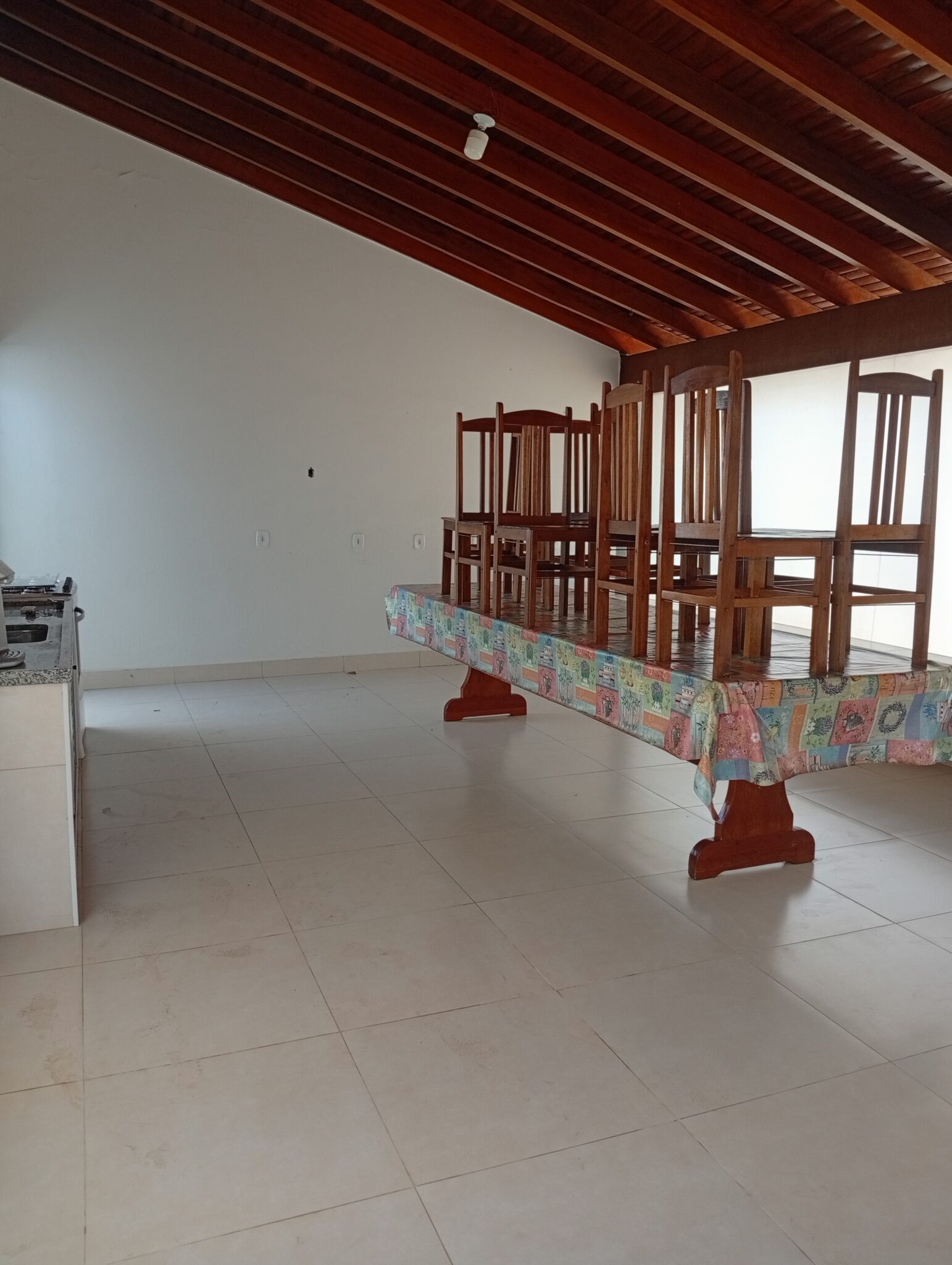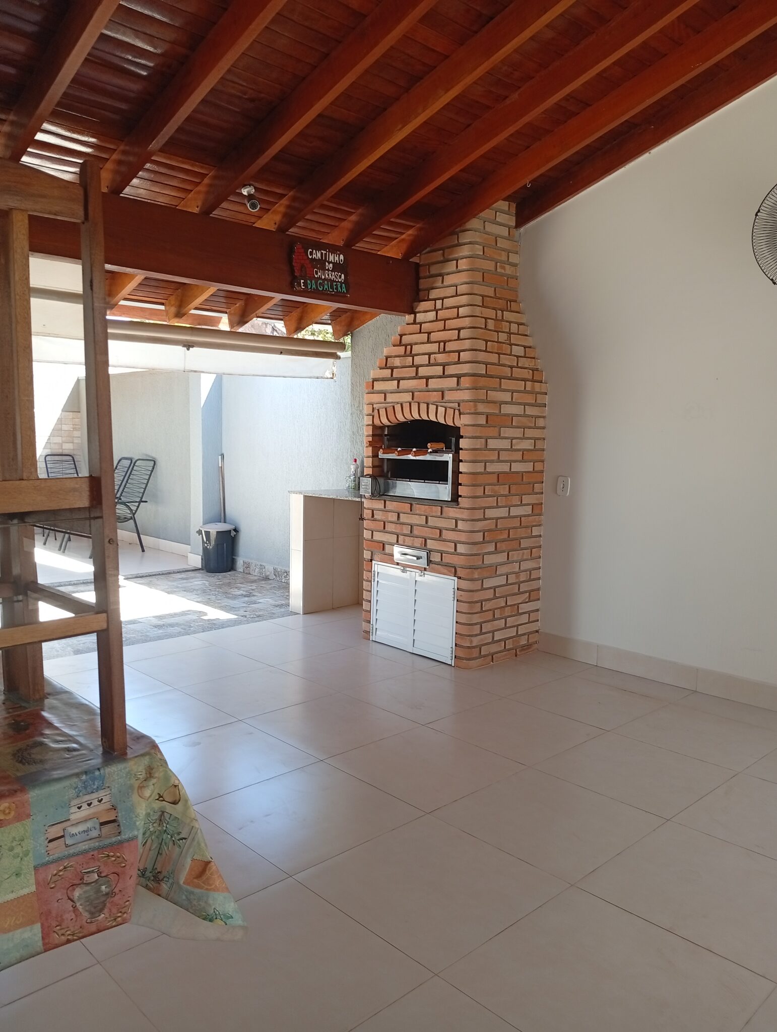 Garagem para 03 carros, 01 sala, 01 social interno, 03 quartos sendo 01 suíte, 01 cozinha interna com armários embutidos, 01 área gourmet com churrasqueira embutida, 01 cozinha externa com varanda, 01 edícula com área de serviço, 01 banheiro social externo, 01 dispensa, 01 quintal.