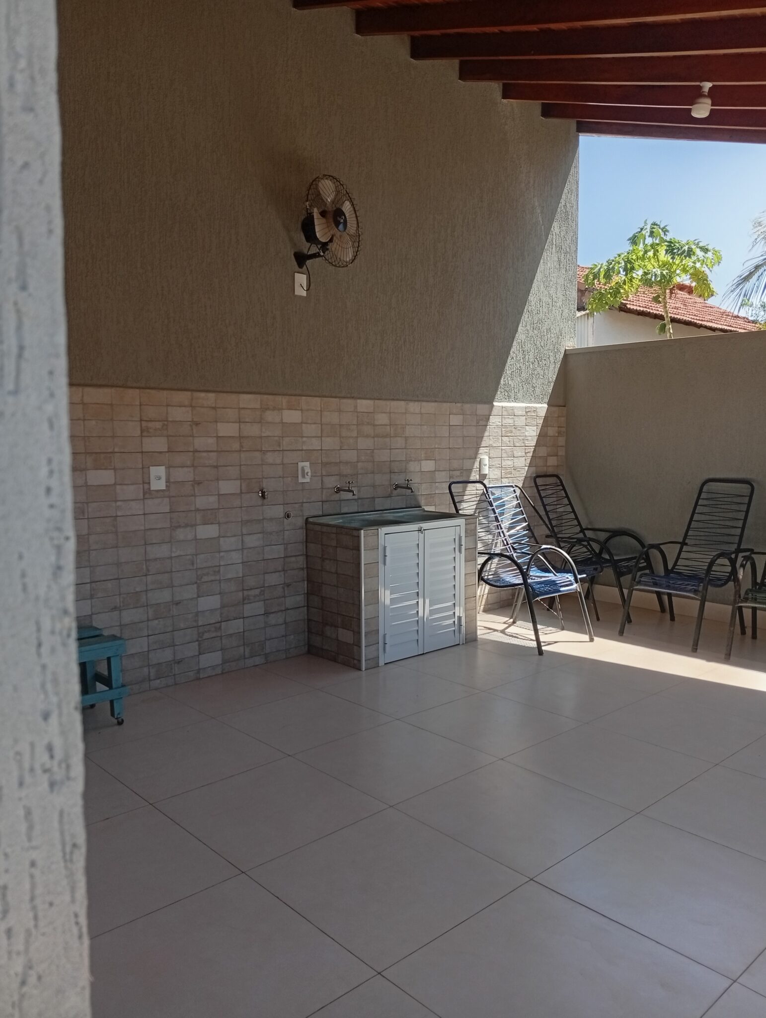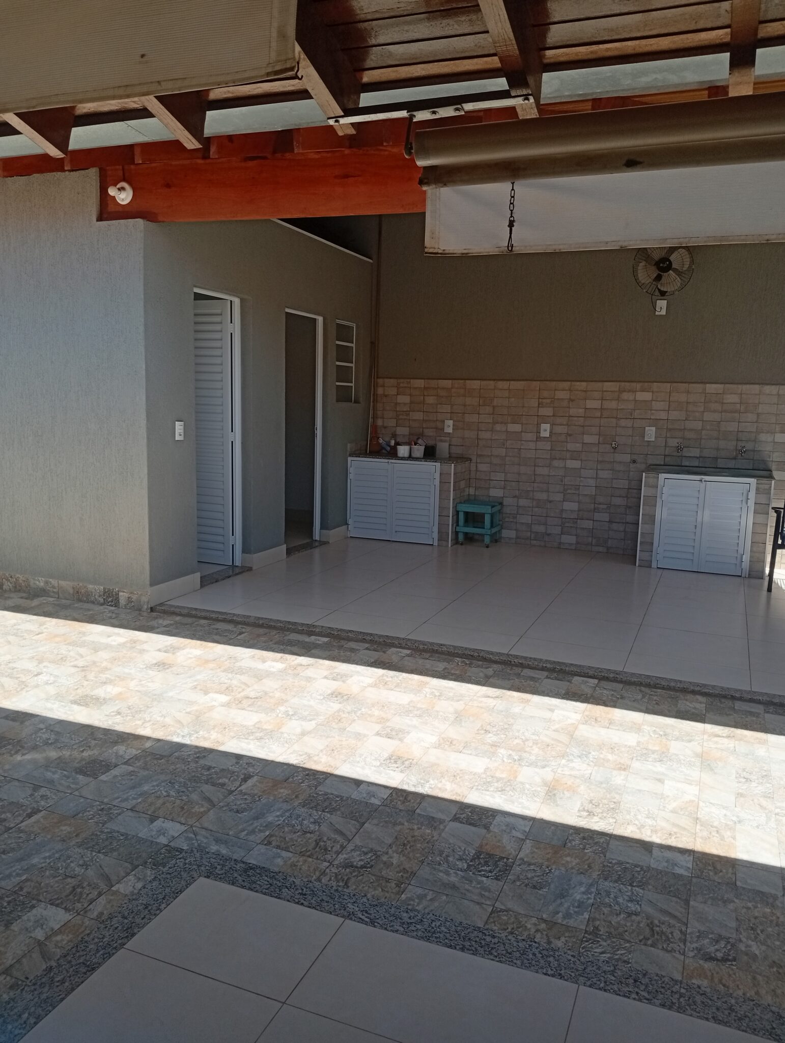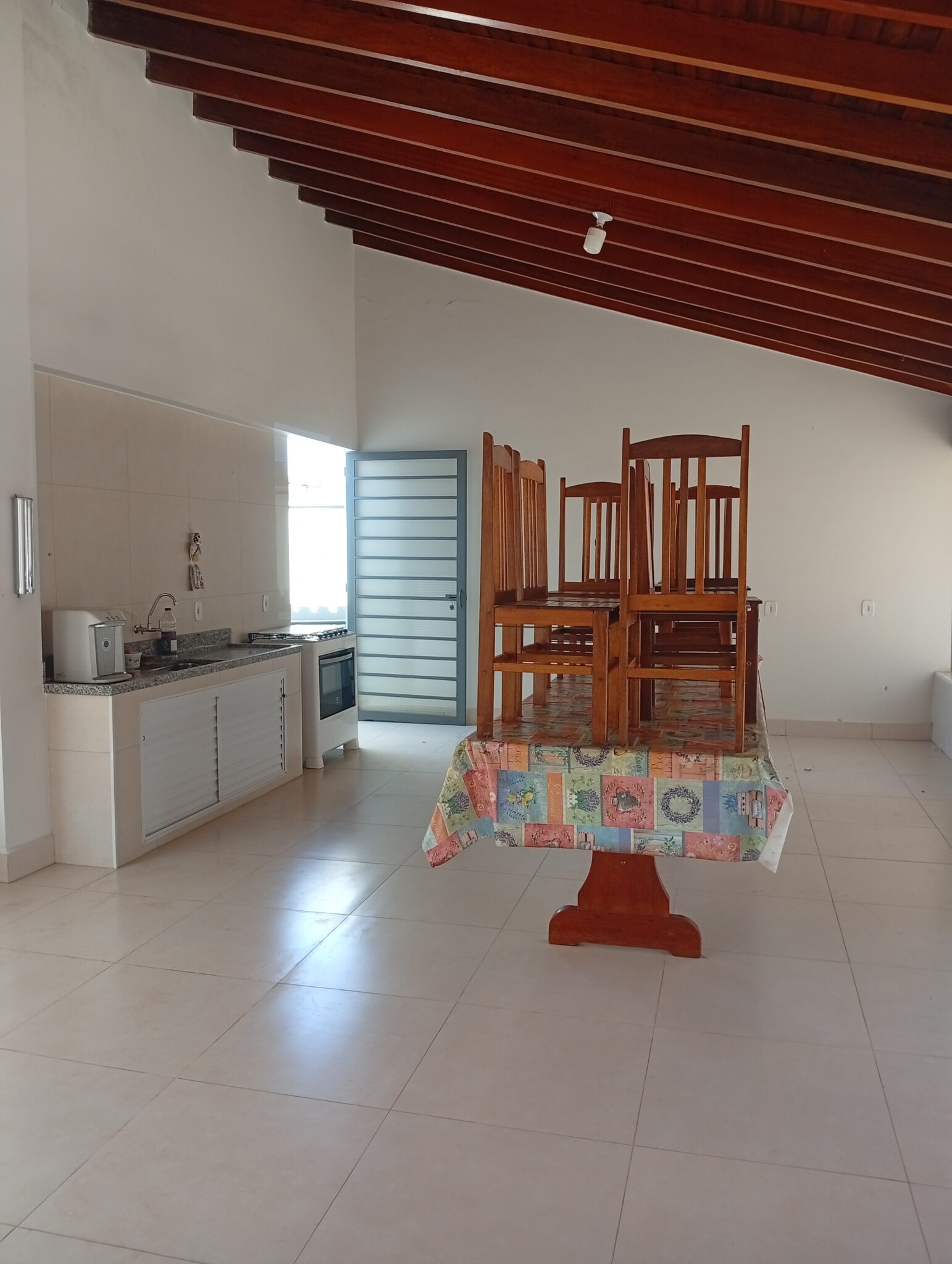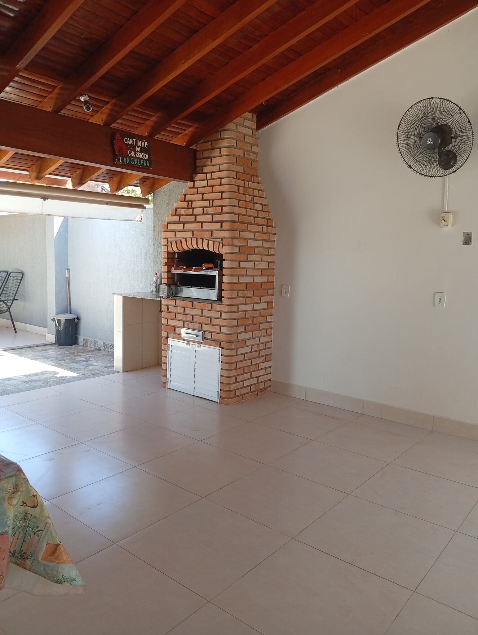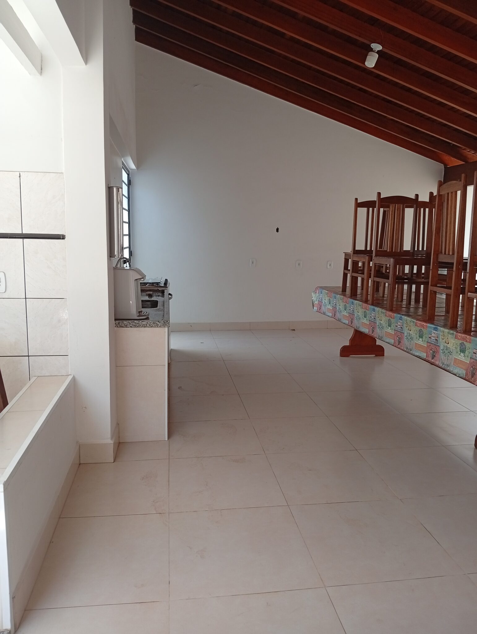 Garagem para 03 carros, 01 sala, 01 social interno, 03 quartos sendo 01 suíte, 01 cozinha interna com armários embutidos, 01 área gourmet com churrasqueira embutida, 01 cozinha externa com varanda, 01 edícula com área de serviço, 01 banheiro social externo, 01 dispensa, 01 quintal.