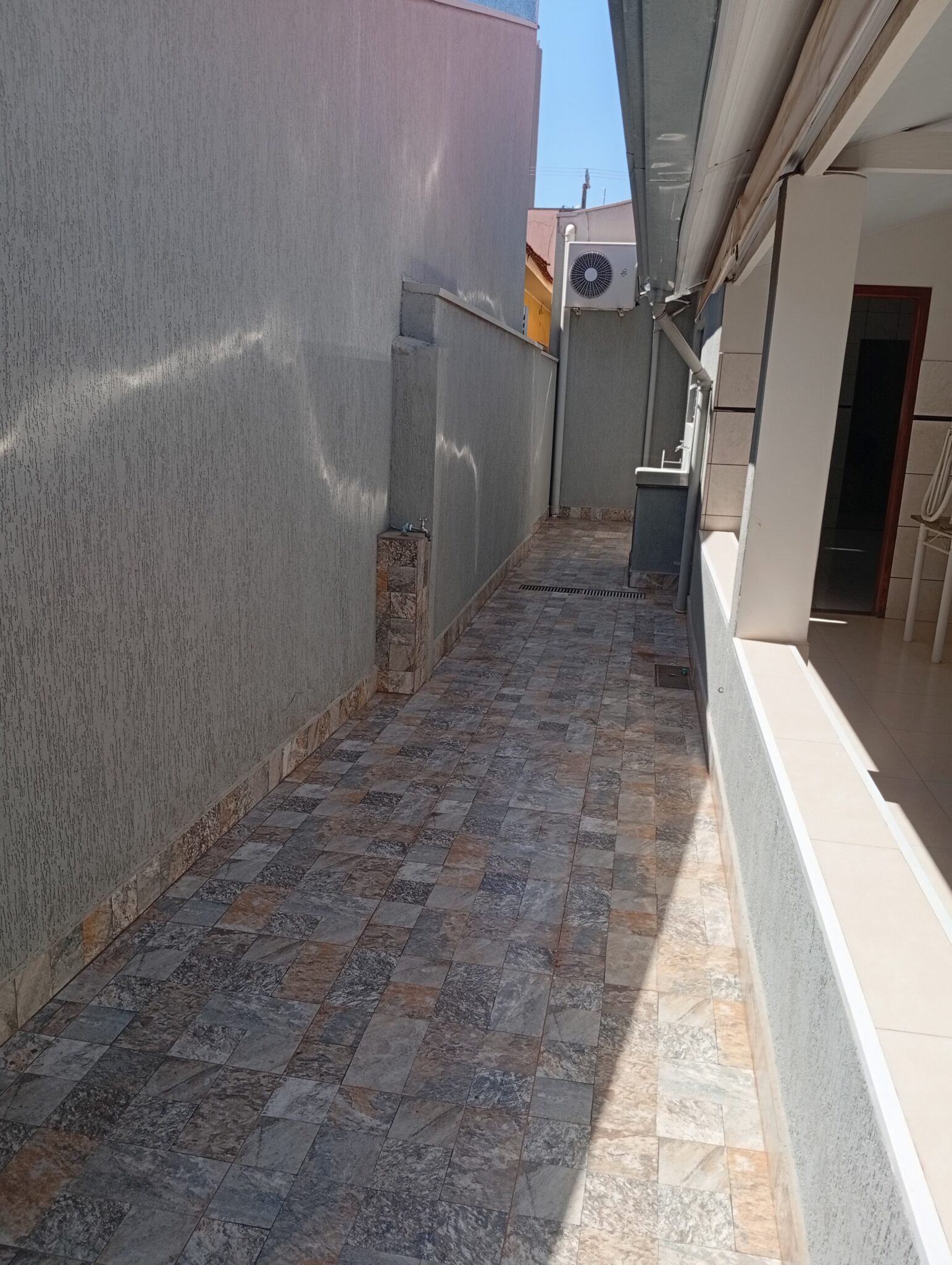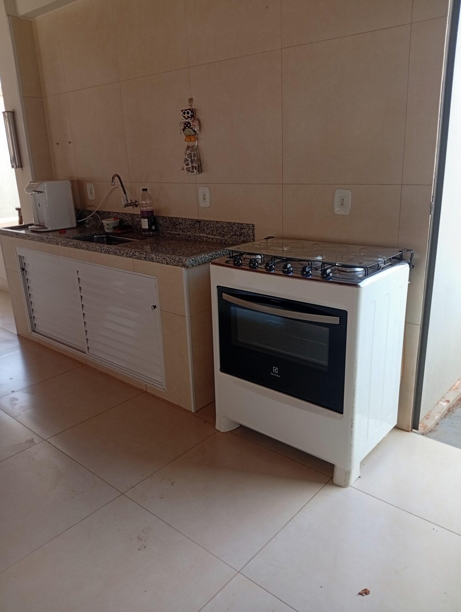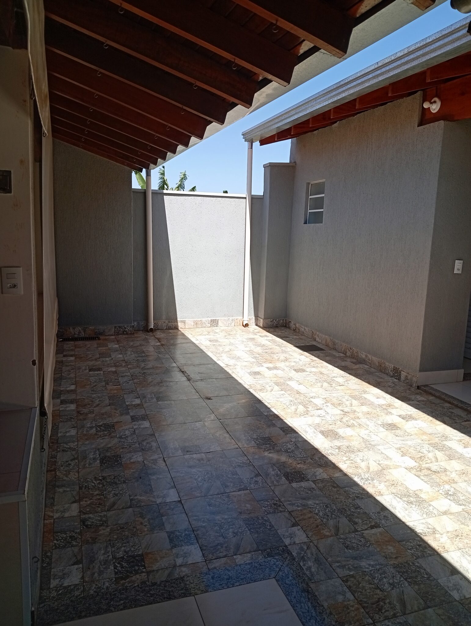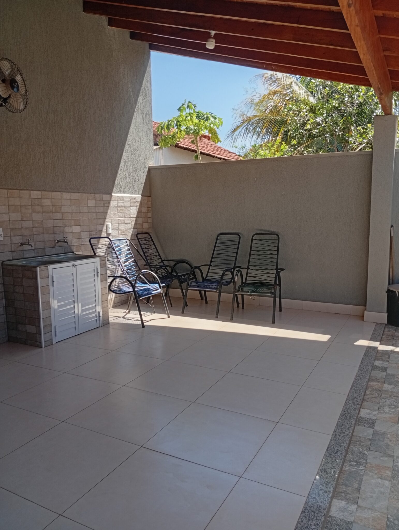 Garagem para 03 carros, 01 sala, 01 social interno, 03 quartos sendo 01 suíte, 01 cozinha interna com armários embutidos, 01 área gourmet com churrasqueira embutida, 01 cozinha externa com varanda, 01 edícula com área de serviço, 01 banheiro social externo, 01 dispensa, 01 quintal.