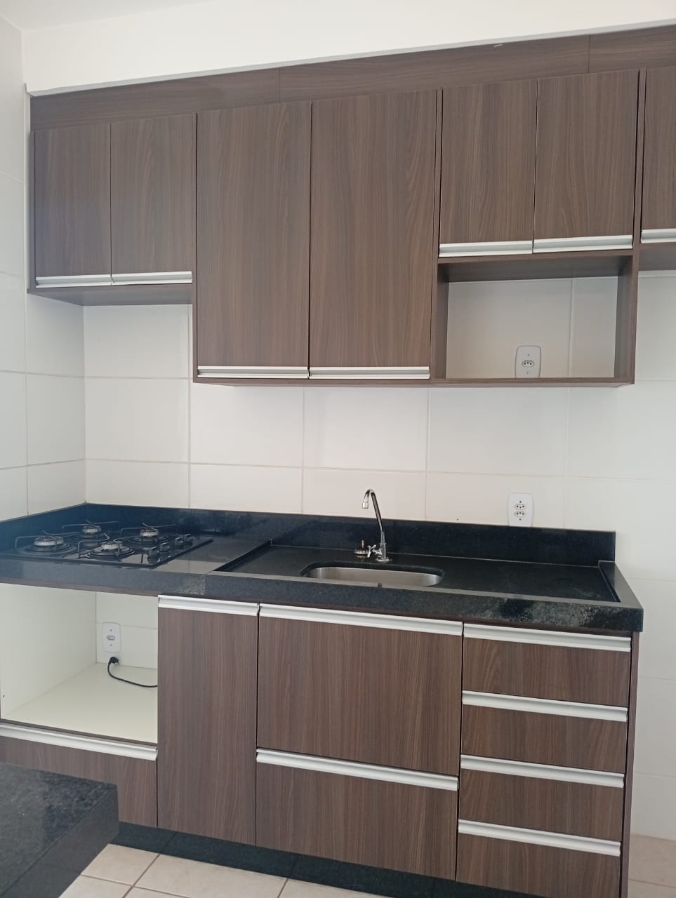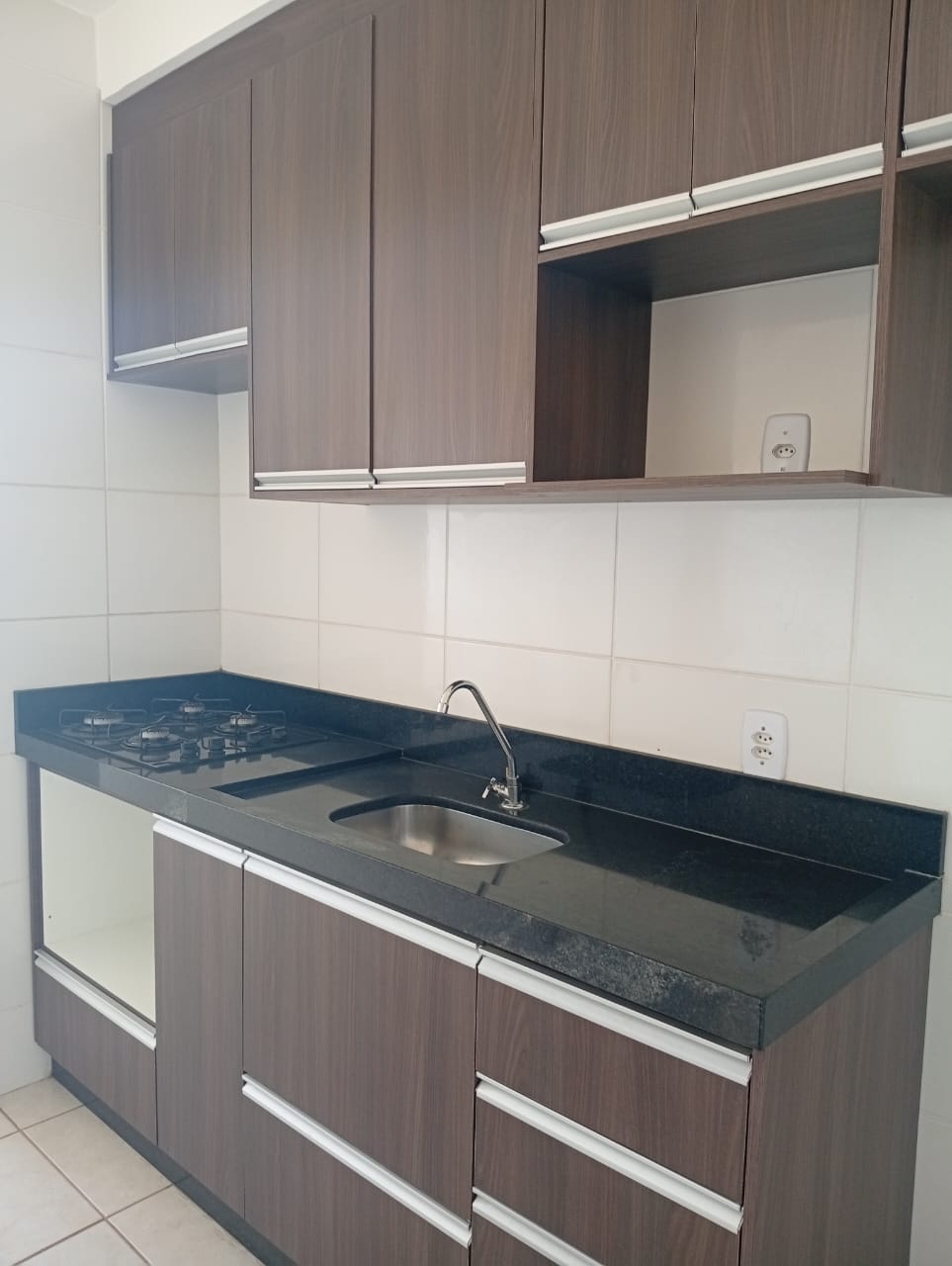 Garagem para 01 carro, 01 sala com painel de TV, 01 sacada, 01 cozinha com armários embutidos e fogão COOKTOP, 01 área de serviço com armário embutido, 02 quartos sendo 01 deles com armário embutido, 01 banheiro social.