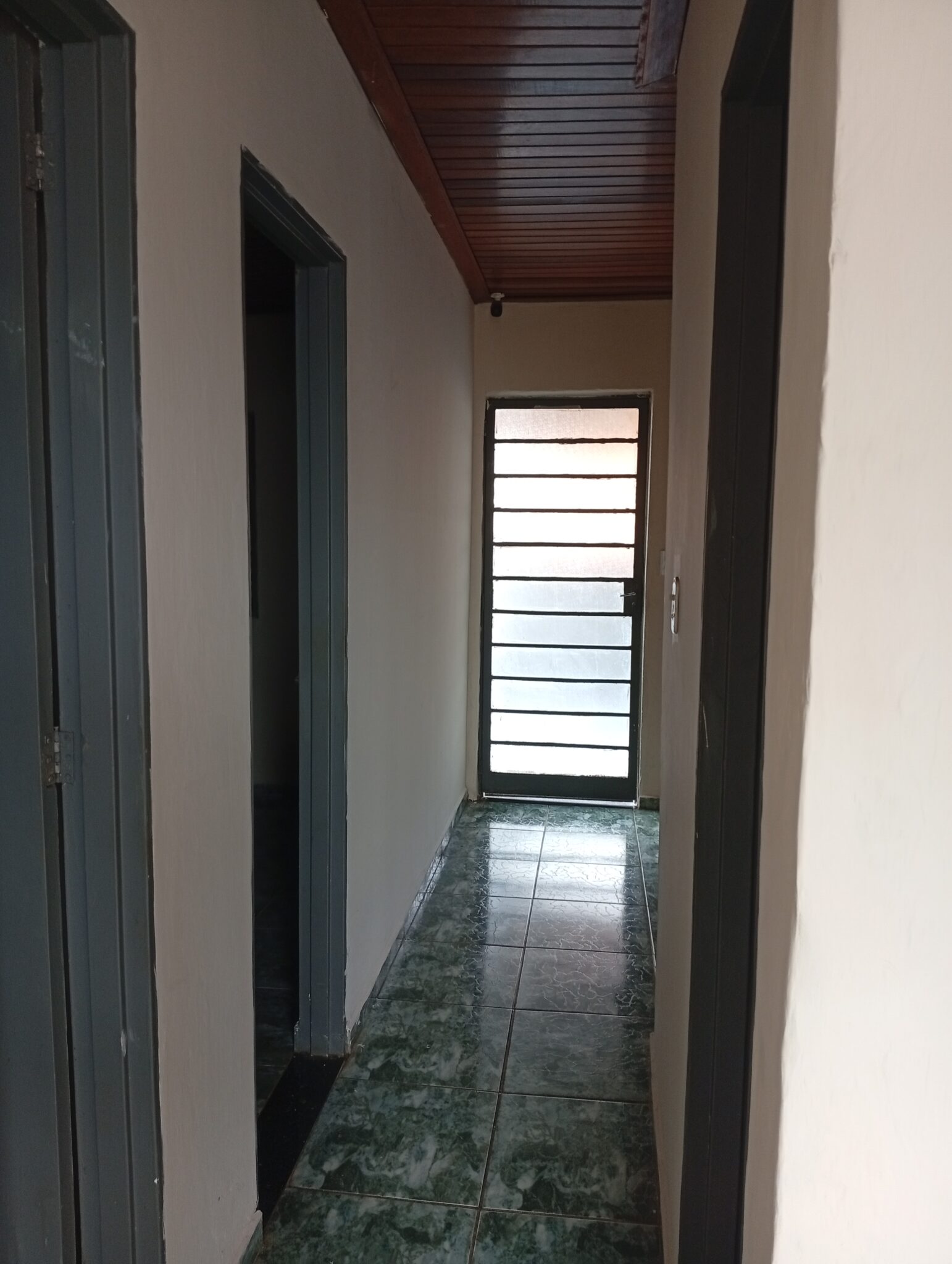 01 Ampla frente, 01 sala comercial, 01 sala de TV, 02 quartos, 01 banheiro social, 01 cozinha, 01 área de serviço, 01 quintal, 01 dispensa.